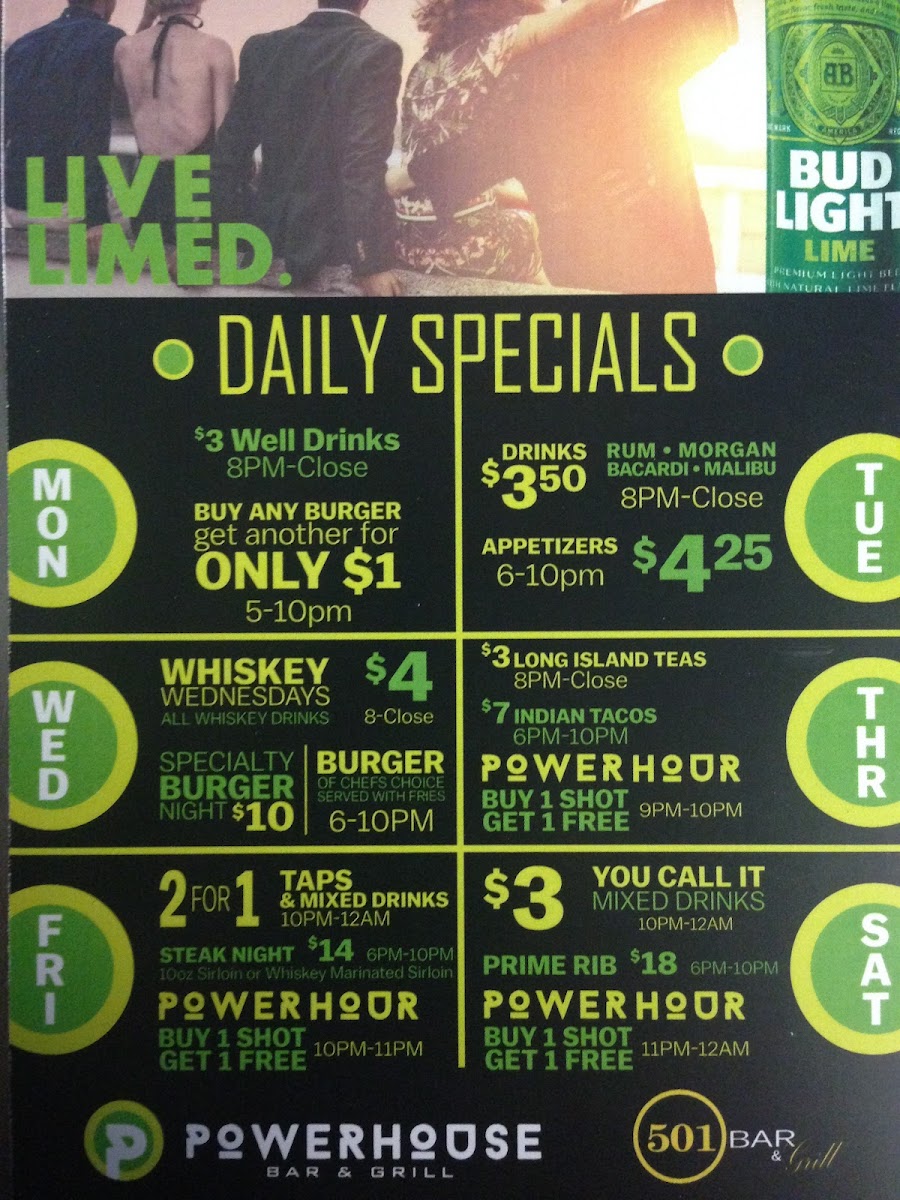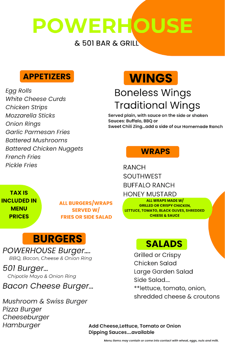 Powerhouse/501 Bar & Grill Menu